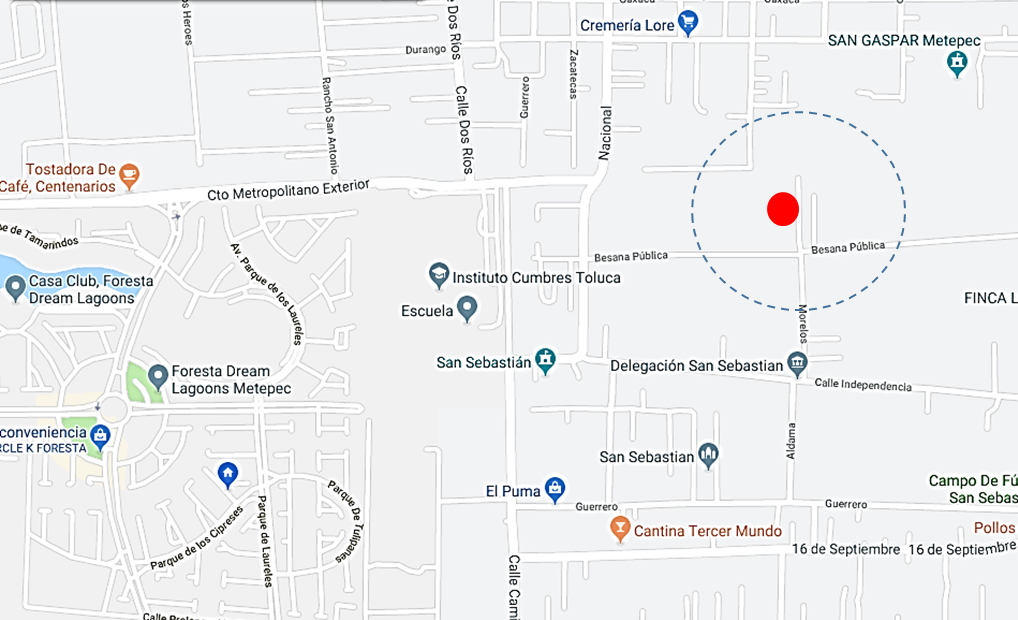 - Ubicación: Privada sin Nombre, Col. San Sebastián. Metepec; Municipio del Estado de México